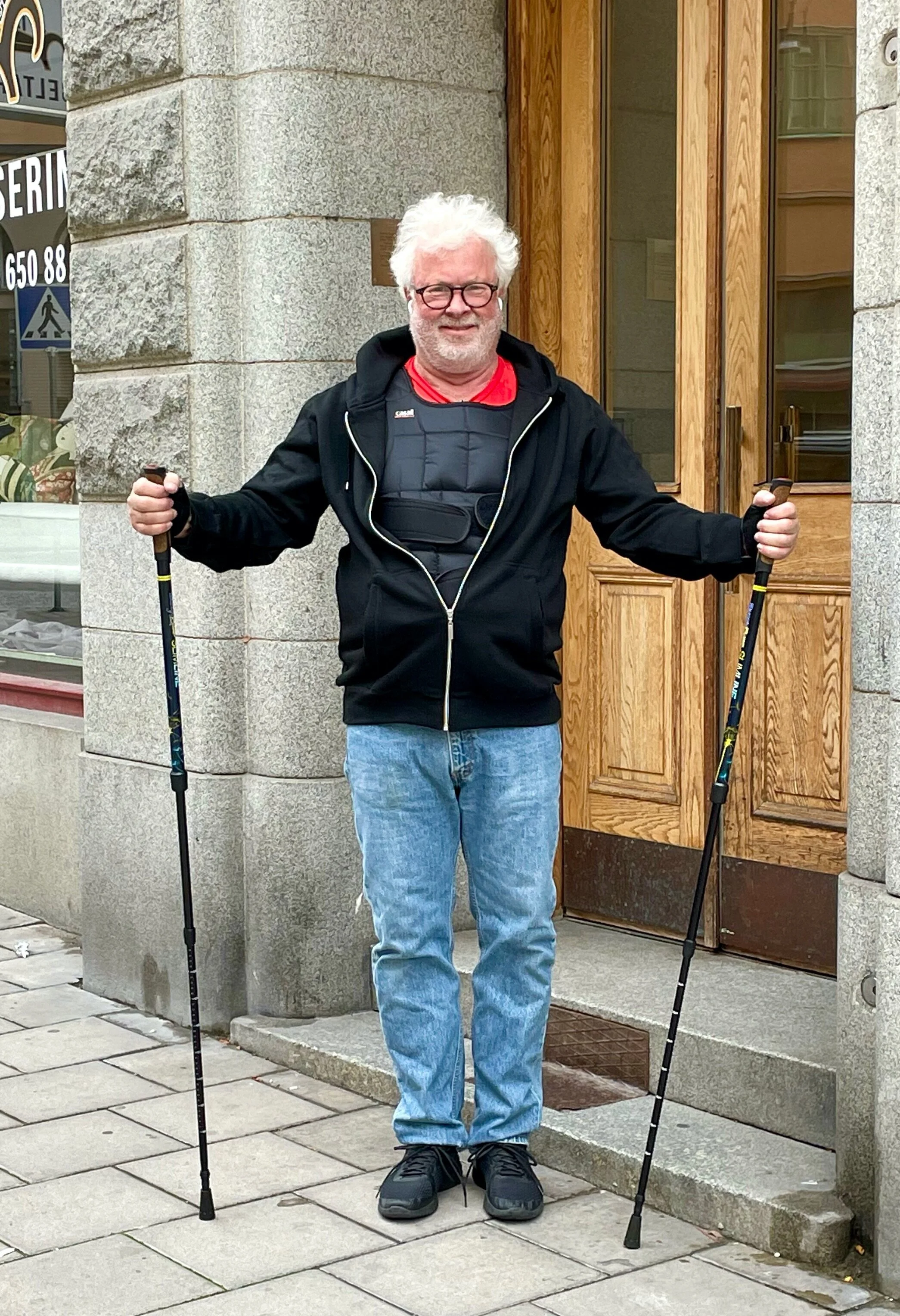 Bosse might not been very interested in physical activities at all times. But inspired by his wife Pia and the quick effect of powerwalking with weight west and walking sticks with resistance he is now very enthusiastic about his new routine - a daily 30 minutes walk in central Stockholm!