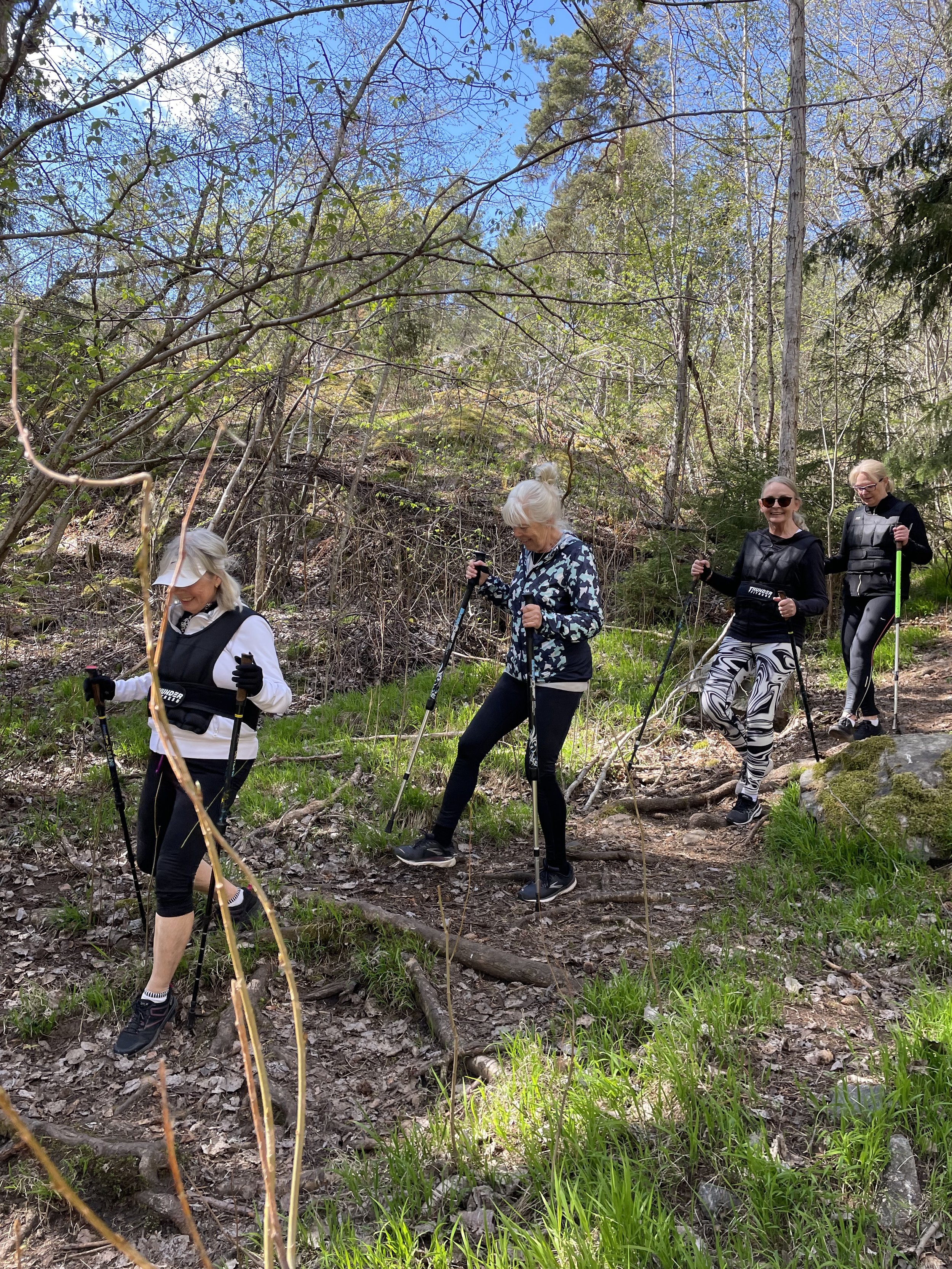 Pia, Carin, Sissi and Helena powerwalking with their BungyPump poles and weight wests