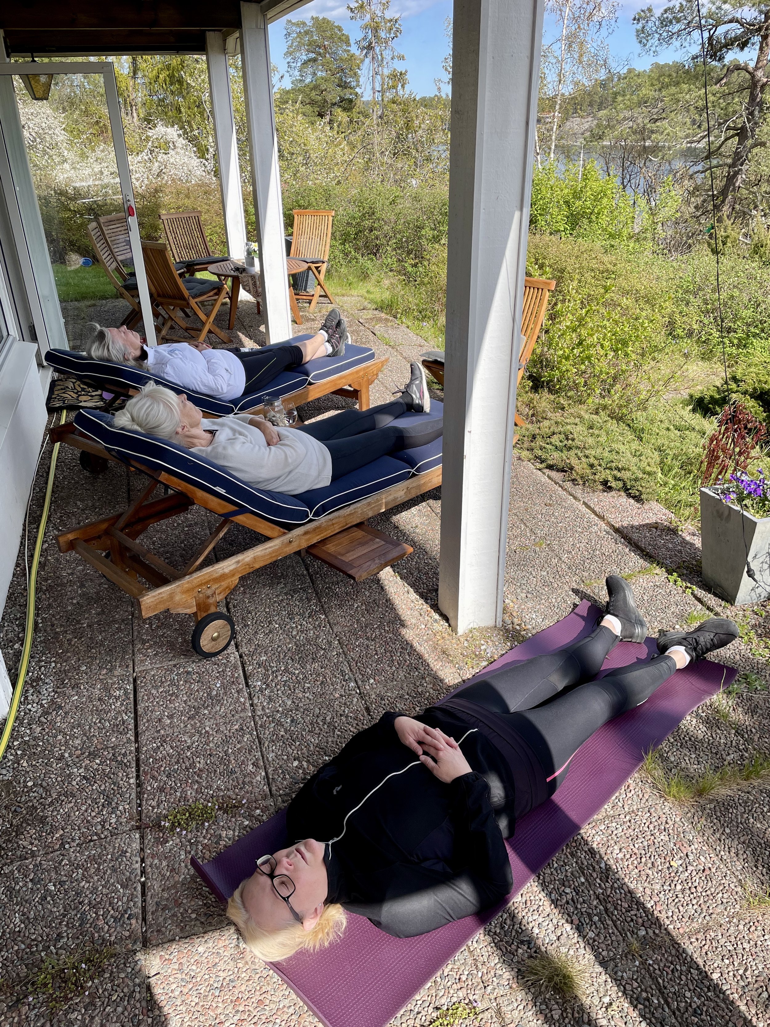 A beautiful mindfullness session after 5 K powerwalking in hilly terrain at Älgö.